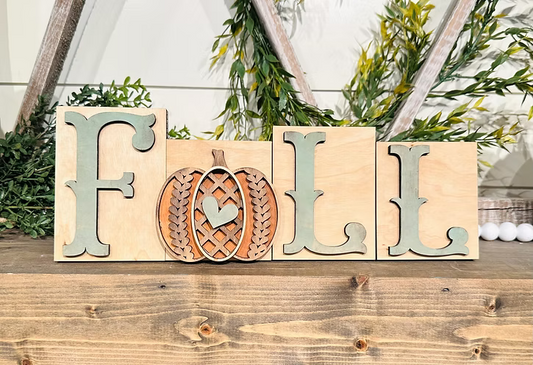 Fall Sweater Pumpkin Word Block Shelf Sitter