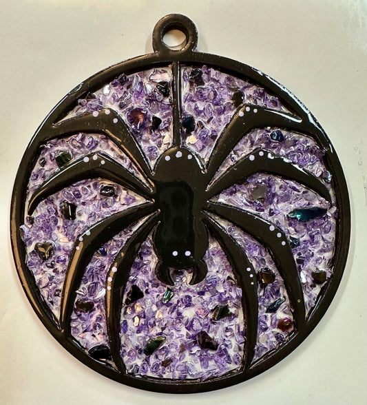 Faux Stain glass Hanging Spider