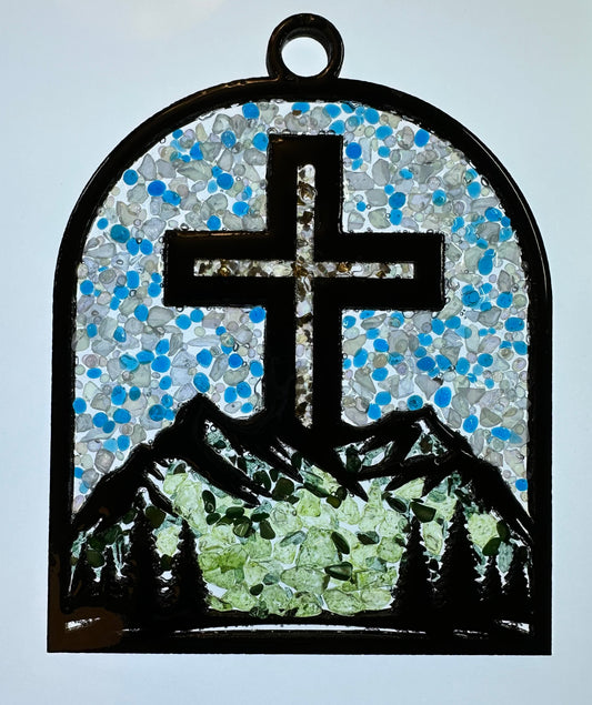 Faux Stain glass Cross on Mountain